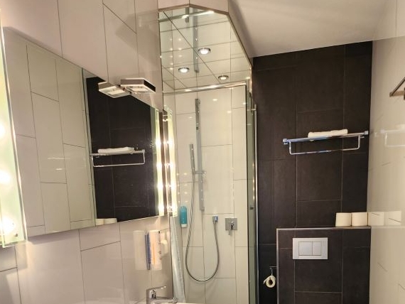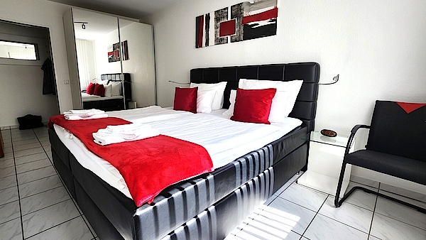 In dem gepflegten, exklusiv ausgestatteten Appartement erwartet Sie ein geräumiges Wohnzimmer mit Sofa, Fernsehgerät und Essecke, eine neu ausgestattete, separate Küche mit Geschirrspüler, Induktionskochfeld, Backofen mit eingebauter Mikrowelle, Kühl-Gefrierkombination und kompletter Geschirrausstattung, ein modernes Schlafzimmer mit Spiegelschrank und 2 x 2 Meter großem Boxspringbett sowie einem weiteren Fernsehgerät, ein Bad mit großer Dusche und WC. Ihr gemütliches Zuhause in Bad Kreuznach erreichen Sie bequem mit dem Fahrstuhl; Ihr Wagen und Ihre Fahrräder sind in der Tiefgarage gut aufgehoben.